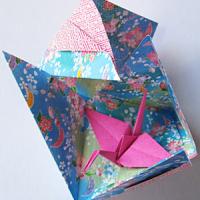 If you make this model using 15cm square sheets of paper, a traditional origami crane made from a 10cm square sheet of paper will just fit nicely inside the closed egg box. A crane made from a 7.5cm sheet will fit even better, but I find very small cranes difficult to make, so I used 10cm paper for the crane shown in the crane-in-box photo which I uploaded to this database.